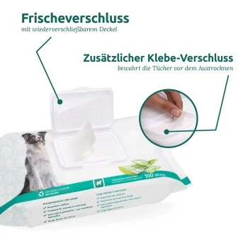 Die Tücher sind besonders reißfest und haben eine Größe von 20 cm x 26 cm. In einem Paket befinden sich 100 Tücher – so wird großen und kleinen Schmutzpfoten der Kampf angesagt.