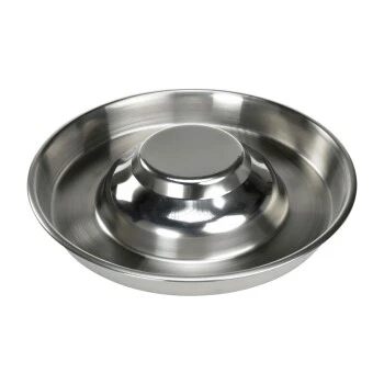 Der flache Außenrand sorgt für eine entspannte Fütterung. Die Erhöhung in der Mitte verhindert, dass die Welpen durch die Schale laufen oder sich hinein setzen.