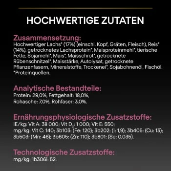 Bei PURINA PRO PLAN wendet unser Team von Ernährungswissenschaftlern und erfahrenen Tierärzten modernste Wissenschaft an, um die fortschrittlichste und effizienteste Nährstoffkombination für dein Haustier zu entwickeln. Diese Rezepturen helfen gezielte Vorteile wie eine hohe Verdaulichkeit und eine hohe Nährstoffaufnahme zu bieten, um die natürlichen Abwehrkräfte und die langfristige Gesundheit deines Haustieres zu unterstützen. Die Zutat Nummer 1 sind immer hochwertige Stücke von Huhn, Lamm, Lachs, Truthahn oder Rind, die tiefgefroren wurden, um wichtige Nährstoffe einzuschließen, und perfekt gegart für einen köstlichen Geschmack.