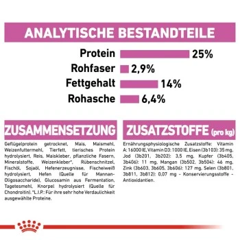 Alle Royal Canin Nahrungen sind ausgewogene Alleinnahrungen. Sie enthalten alle wichtigen Nährstoffe wie hochwertige Proteine, Fette, Ballaststoffe, Vitamine und Mineralien, die Ihr Hund für seine lebenslange Gesundheit benötigt.
