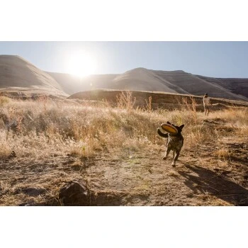 Die leistungsstarke Frisbeescheibe bringt dem Hund viel Spaß beim Apportieren auf der Wiese. Die Hover Craft™ hat einen vorgeformten Schaumstoffkern, der die Scheibe noch weiter fiegen und sie im Wasser schwimmen läßt. Die weiche Konstruktion ist schonend für Zähne und Zahnfleisch, aber dennoch strukturiert genug, um auch mit der Zeit nicht ihre Form zu verlieren. Helle Farben und eine reflektierende Ziernaht machen die Wurfscheibe leicht erkennbar – auch bei schlechten Lichtverhältnissen. Unsere Spielzeuge sind alle interaktiv – so macht das Spielen einfach mehr Spaß. Obwohl unsere Toys vielseitig verwendet werden können, sind unsere Vierbeiner recht schlau, sollte es etwas zum Kauen geben. Wir empfehlen deshalb ein beaufsichtigtes Spiel. Wenn sich ein Teil des Spielzeugs lockert oder etwas ablöst, sollte es weggenommen und entsorgt werden.