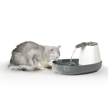 Dieser Trinkbrunnen, welcher in Zusammenarbeit mit einem Verhaltensexperten für Katzen entwickelt wurde, weist 3 Trinkbereiche auf, um die Vorlieben aller Katzen zu erfüllen: sprudelndes, fließendes oder stehendes Wasser.